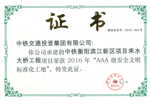 耒水大橋工程榮獲AAA級安全文明標準化工地,全國現(xiàn)場管理星級評價四星級現(xiàn)場。