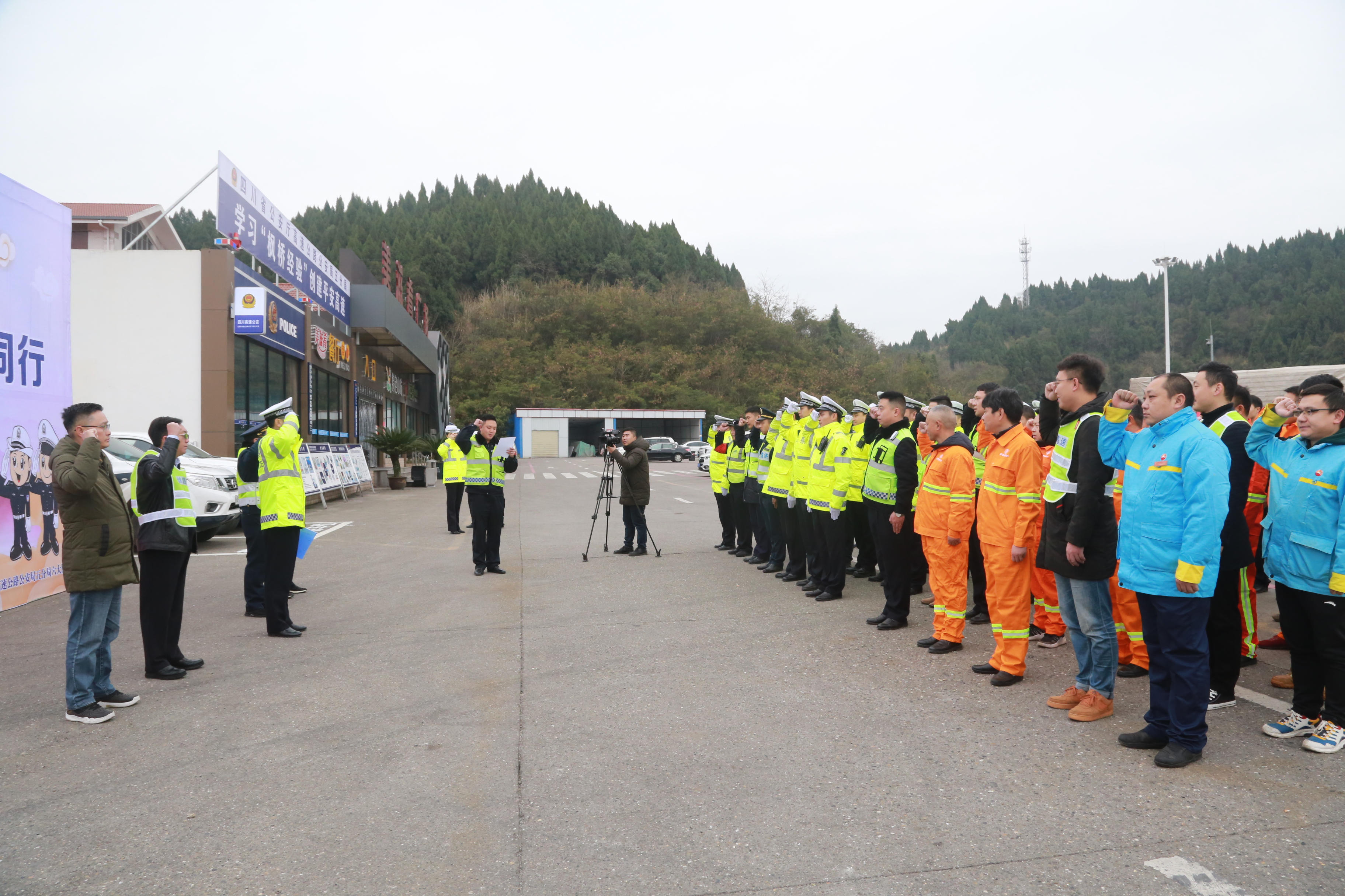 綿遂高速聯(lián)合高速交警在遂寧東服務(wù)區(qū)舉行春運(yùn)誓師大會(huì)。