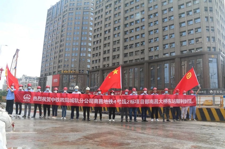 5月30日,南昌大橋東站車站主體結(jié)構(gòu)工程順利封頂,提前15天完成“大干100天”節(jié)點(diǎn)考核目標(biāo)。