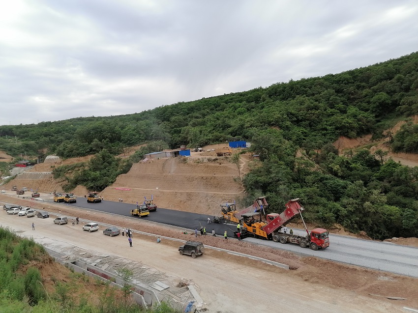 ▲九只窯隧道進(jìn)口瀝青下面層攤鋪施工