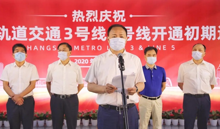 ▲長沙市委副書記、市長、湖南湘江新區(qū)黨工委書記鄭建新宣布長沙地鐵5號線正式載客初期運營