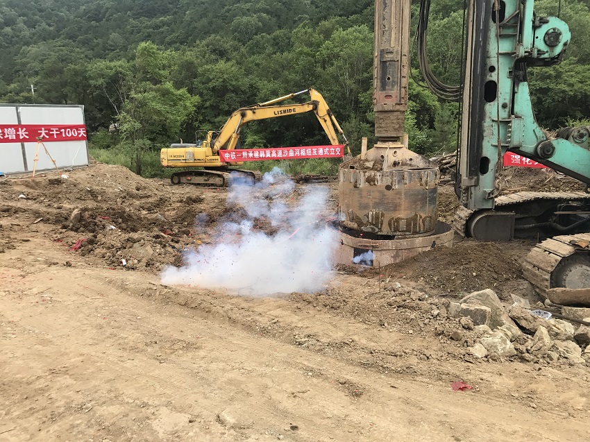 7月17日,韓黃項目沙曲河樞紐開始樁基施工,標志著韓黃高速公路全線第一根樁基開始施工。