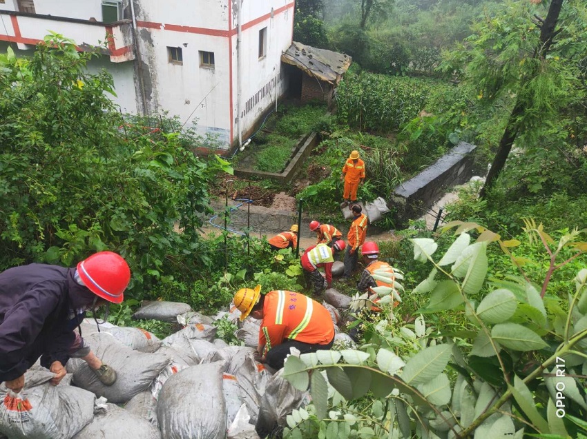 3、“除”較大隱患。尖山子隧道棄土場雨水過大導(dǎo)致水流外溢,公司及時用沙袋增高排水溝高度,同時,抓住時機(jī)在雨水短暫停歇時加緊砌磚加固,進(jìn)一步防止水流外溢。