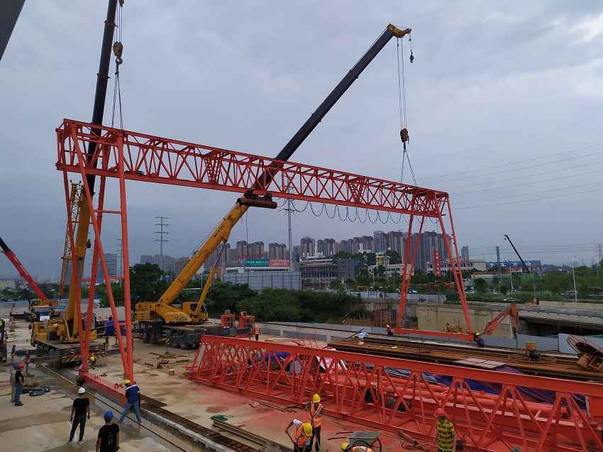 7月27日,隨著吊車(chē)的轟鳴聲,一臺(tái)鋪軌龍門(mén)吊緩緩升起,標(biāo)志著金橋客運(yùn)站鋪軌基地龍門(mén)吊正式架設(shè)。金橋客運(yùn)站鋪軌基地是南寧地鐵5號(hào)線(xiàn)的鋪軌基地之一,建設(shè)之初場(chǎng)地存在高差,建鋪軌龍門(mén)吊走行線(xiàn)較困難,經(jīng)過(guò)多次比選設(shè)計(jì)方案,最后選擇了“一邊通過(guò)高架橋、一邊通過(guò)下沉”的方式來(lái)消除高差。經(jīng)過(guò)一個(gè)月建設(shè),已完成鋪軌軌排井至末端的走行線(xiàn)安裝,正式開(kāi)始架立鋪軌龍門(mén)吊,標(biāo)志著鋪軌單位正式進(jìn)入鋪軌。