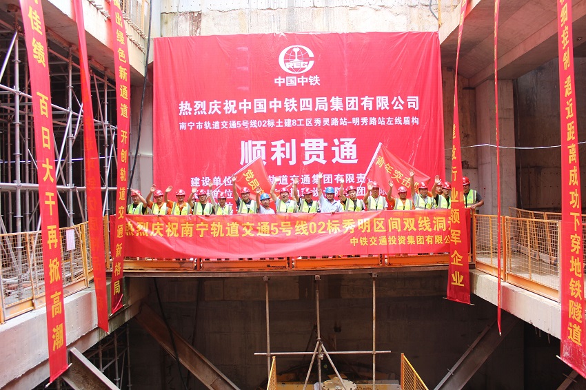 ▲7月20日,秀靈路站至明秀路站區(qū)間左線(xiàn)貫通標(biāo)志著南寧地鐵5號(hào)線(xiàn)02標(biāo)項(xiàng)目全線(xiàn)隧道順利實(shí)現(xiàn)“洞通”