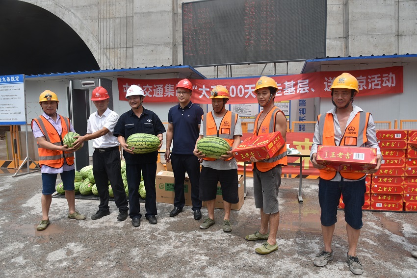 7月,集團(tuán)公司黨委副書記、紀(jì)委書記、工會(huì)主席韓鳳巖在成達(dá)公司調(diào)研期間,代表集團(tuán)公司黨政工團(tuán)組織開展“大干100天、走基層、送清涼”活動(dòng),為項(xiàng)目部員工和農(nóng)民工兄弟發(fā)放了板藍(lán)根、藿香正氣液、風(fēng)油精和西瓜等防暑降溫慰問(wèn)品。