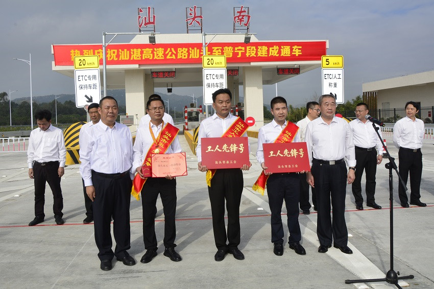 上午10:00,廣東汕湛高速公路汕頭至普寧段通車慰問活動(dòng)在汕頭南收費(fèi)站入口舉行,活動(dòng)全面展示了中國(guó)中鐵各參建單位的建設(shè)歷程和成果,廣東省交通運(yùn)輸廳、汕頭市總工會(huì)向參與項(xiàng)目的中國(guó)中鐵建設(shè)者致以最誠(chéng)摯的慰問,并頒發(fā)了先進(jìn)集體、先進(jìn)個(gè)人獎(jiǎng)牌獎(jiǎng)?wù)隆?/span>