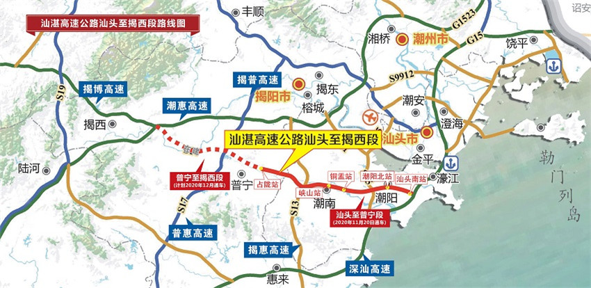 項(xiàng)目由中鐵交通汕湛公司負(fù)責(zé)建設(shè)運(yùn)營(yíng)管理,采用高速公路建設(shè)標(biāo)準(zhǔn),設(shè)計(jì)行車速度120公里/小時(shí),雙向六車道,路基寬度34.5米,路線橫貫汕頭揭陽兩市、直通珠三角,項(xiàng)目建成后成為快速聯(lián)通粵東地區(qū)與粵港澳大灣區(qū)、貫通沿海經(jīng)濟(jì)帶的大動(dòng)脈,將進(jìn)一步完善以汕頭為中心的粵東高速公路網(wǎng)絡(luò),縮短粵東與大灣區(qū)的時(shí)空距離,輕松實(shí)現(xiàn)汕潮揭“半小時(shí)通勤圈”,汕頭往返普寧行車時(shí)間可節(jié)約半小時(shí)左右,對(duì)促進(jìn)沿線地方經(jīng)濟(jì)發(fā)展、方便沿線百姓出行具有重要意義。