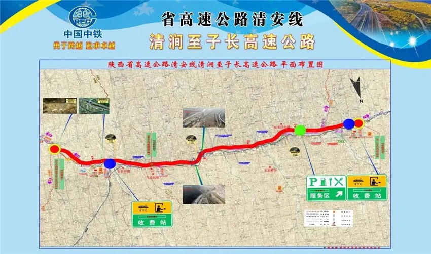 清澗至子長(zhǎng)高速公路是陜西省高速公路網(wǎng)規(guī)劃中清安線的重要組成部分,是與已通車運(yùn)營的綏延主線(綏德至延川)打包捆綁的陜西省第一個(gè)高速公路PPP項(xiàng)目。項(xiàng)目起于清澗縣城以北的西賀家溝,設(shè)清澗北樞紐立交與綏延高速公路相接,終點(diǎn)在吳家坪東設(shè)子長(zhǎng)東立交連接線接G340,路線長(zhǎng)度約30公里,采用雙向四車道高速公路技術(shù)標(biāo)準(zhǔn),設(shè)計(jì)速度80公里/小時(shí),全線設(shè)互通立交3處,服務(wù)區(qū)1處,收費(fèi)站2處。