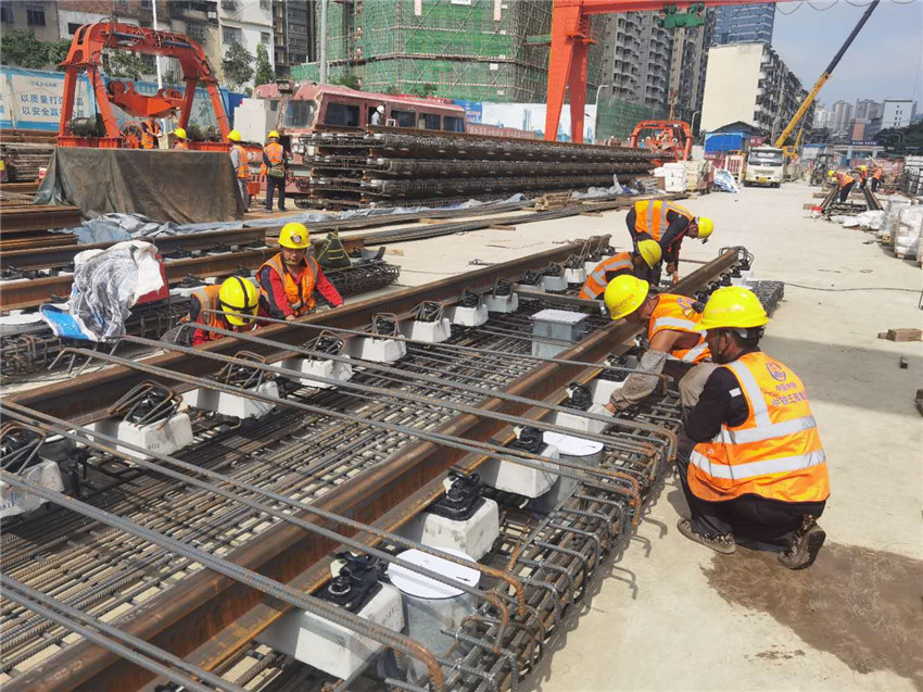 南寧地鐵5號線02標(biāo)鋪軌工區(qū)自2020年9月1日開工以來,面臨施工時間緊、場地交叉移交難度大、作業(yè)面移交滯后、施工面狹小、軌行區(qū)多單位交叉施工管理困難等不利因素,鋼彈簧浮置板道床、減振墊浮置板道床施工范圍分散等復(fù)雜施工工藝難題,指揮部精心組織,積極與業(yè)主、工區(qū)、設(shè)計、監(jiān)理等單位協(xié)調(diào)溝通,嚴(yán)格貫徹“四化一綠”“六專”等理念,掀起“決戰(zhàn)四季度、決勝保目標(biāo)”專項勞動競賽大干熱潮,通過調(diào)整資源配置,優(yōu)化施工工藝,提前一周圓滿實現(xiàn)了雙線短軌通重大節(jié)點目標(biāo)。