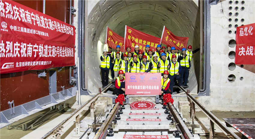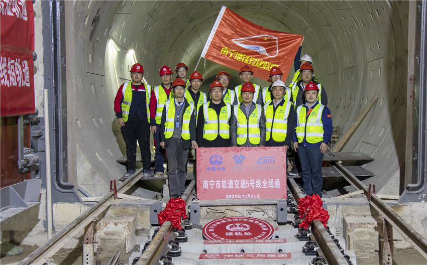 12月24日上午10時10分,最后一節(jié)鋼軌在廣西大學(xué)站右線小里程端YK22+034處順利合攏,標(biāo)志著南寧地鐵5號線全線短軌通目標(biāo)提前7天實現(xiàn),由中國中鐵總包、中鐵交通代管、中鐵三局承建的南寧地鐵5號線02標(biāo)雙線鋪軌主體已全部完成,為后續(xù)南寧地鐵5號線建設(shè)奠定了堅實基礎(chǔ)。