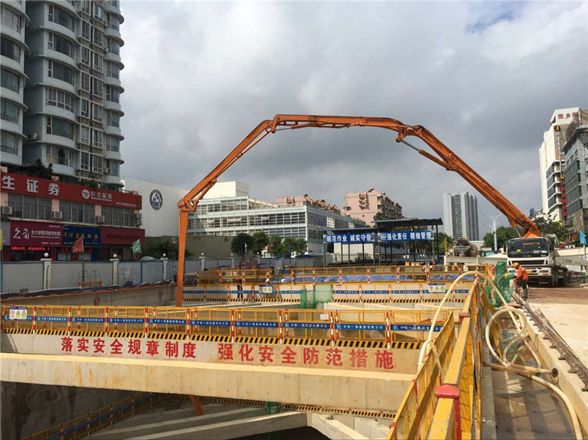 金湖廣場站首塊底板順利澆筑完成