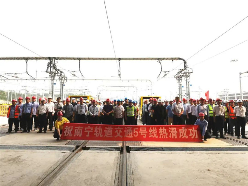 南寧地鐵5號線為南寧首條全自動駕駛線路,是聯(lián)系南寧市西南—東北方向的骨干線,線路南起經(jīng)開區(qū)國凱大道,北至興寧區(qū)金橋客運(yùn)站,全長20.2公里,共設(shè)車站17座,其中換乘站6座,均為地下線。此次熱滑試驗(yàn)圓滿完成,標(biāo)志著南寧地鐵5號線將進(jìn)入到列車上線調(diào)試階段,為全面開展綜合聯(lián)調(diào)奠定了堅(jiān)實(shí)基礎(chǔ)。指揮部將繼續(xù)堅(jiān)持“創(chuàng)新創(chuàng)效 優(yōu)質(zhì)發(fā)展”的企業(yè)宗旨,發(fā)揚(yáng)“開路先鋒”的鐵軍精神,不斷強(qiáng)化安全質(zhì)量、文明施工管控力度,集中資源精力向保通車目標(biāo)發(fā)起沖鋒。