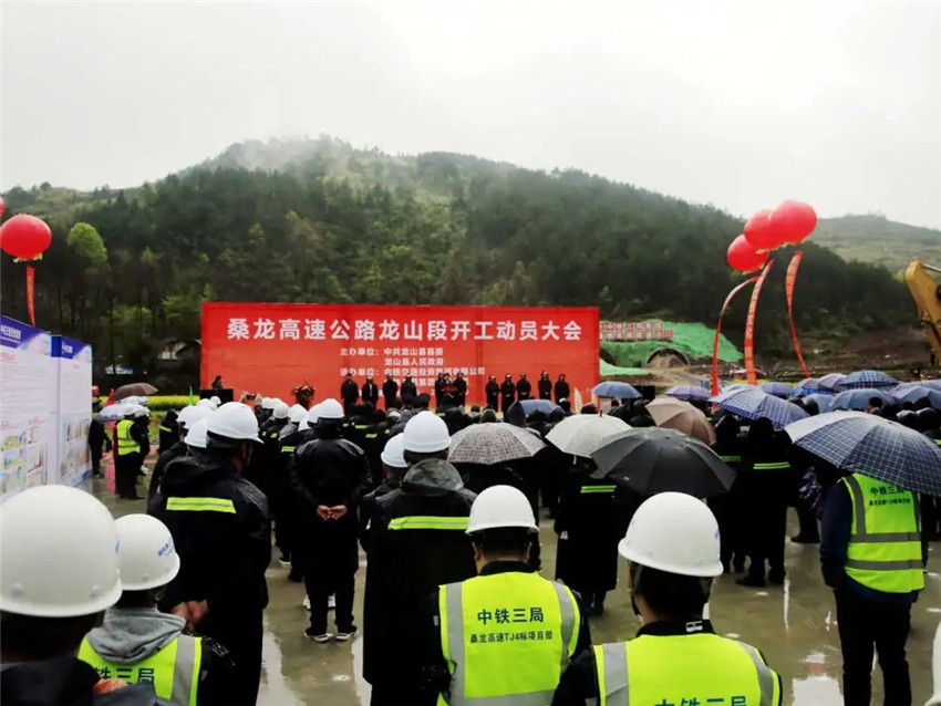 3月30日,桑龍高速公路龍山段項目開工動員大會在龍山縣茨巖塘鎮(zhèn)甘露村姚家埡隧道出口舉行。龍山縣委書記劉冬生、縣長時榮芬及相關(guān)縣級領(lǐng)導、州縣直相關(guān)單位負責人、沿線鄉(xiāng)鎮(zhèn)干部群眾代表、中國中鐵建設(shè)者代表,共計240余人參加開工動員大會。