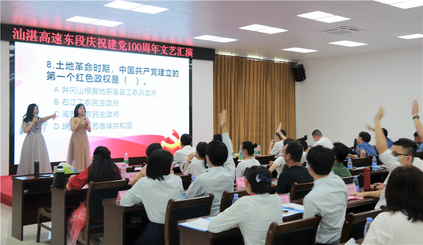 文藝匯演期間還穿插了黨史競(jìng)答環(huán)節(jié),競(jìng)答內(nèi)容以黨的歷史、發(fā)展為主,一波又一波的搶答將氣氛推向了高潮,贏得了現(xiàn)場(chǎng)觀眾的陣陣掌聲,切實(shí)營(yíng)造出了慶祝建黨百年的濃厚氛圍。