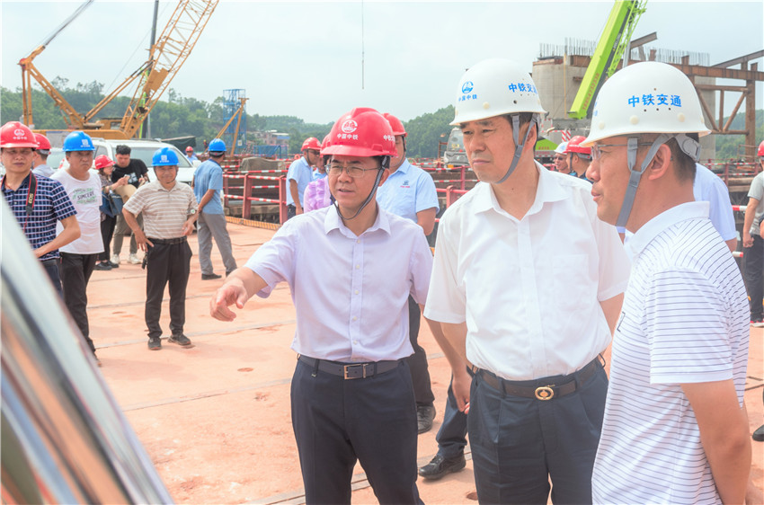 廣西壯族自治區(qū)政協(xié)副主席錢學(xué)明到項(xiàng)目控制性工程魯塘江大橋施工現(xiàn)場,詳細(xì)了解魯塘江大橋的工程概況、施工進(jìn)度、施工重難點(diǎn)、施工管理亮點(diǎn)等情況,并在項(xiàng)目公司駐地組織召開了專題座談會,進(jìn)一步統(tǒng)一了項(xiàng)目推進(jìn)相關(guān)意見。