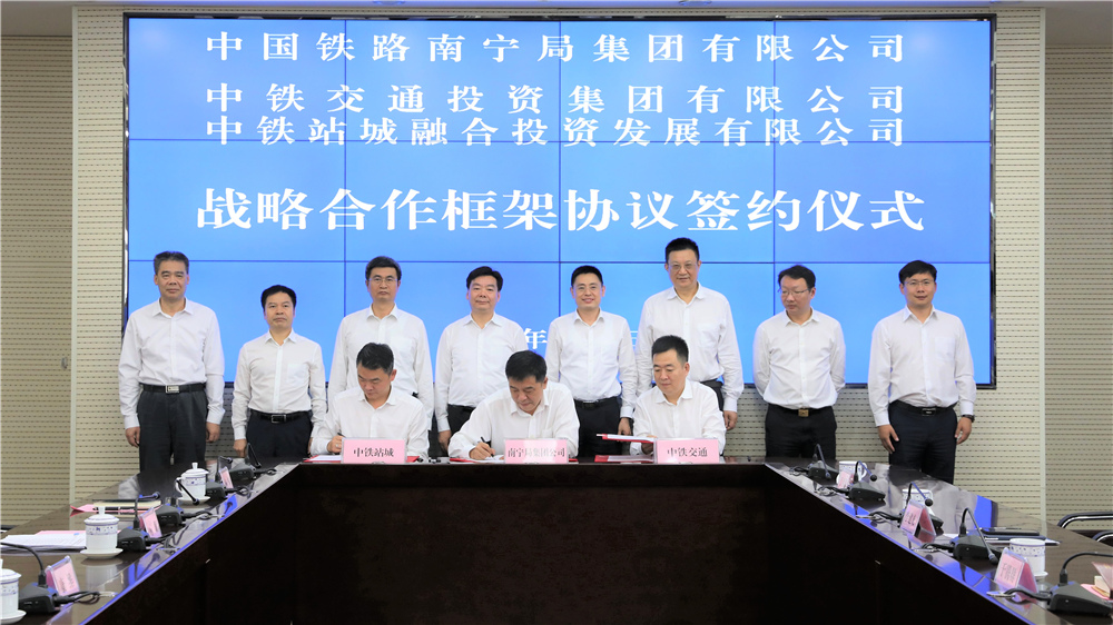 2021年11月3日,中國中鐵股份有限公司與中國鐵路南寧局集團有限公司在桂舉行工作會談,并簽訂戰(zhàn)略合作框架協(xié)議