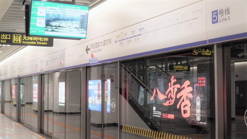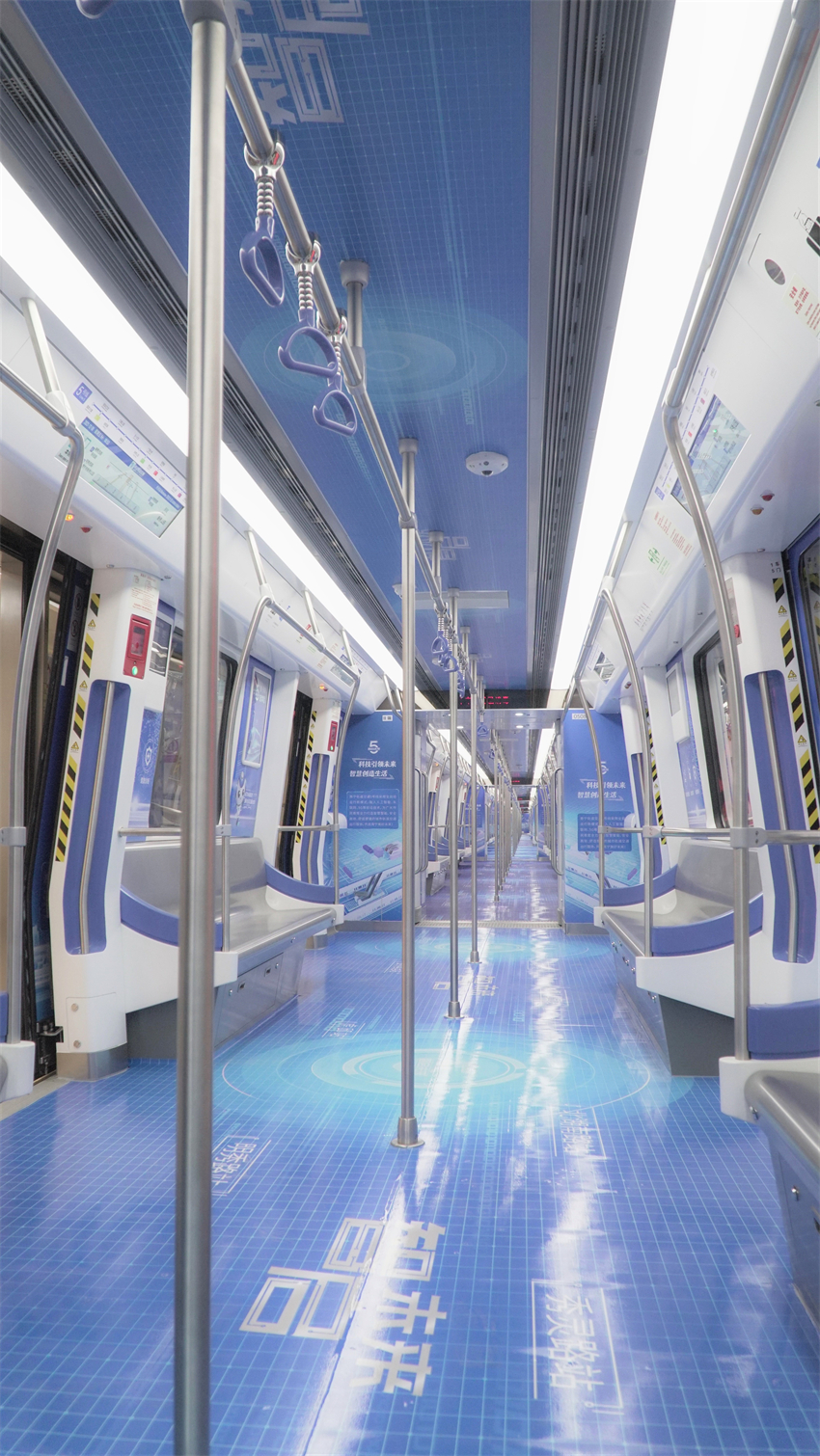 南寧軌道交通5號(hào)線定位為生態(tài)宜居線,整體裝飾以“綠城水韻”為主題,以“邕水藍(lán)”為線路色,以“邕江之水”為文化元素,象征著綠城南寧在母親河邕江水的滋養(yǎng)下,生機(jī)盎然。列車采用全自動(dòng)駕駛技術(shù),在車輛行駛、狀態(tài)評(píng)估、故障處置等方面實(shí)現(xiàn)了全自動(dòng)控制,為市民提供了更智能、更安全、更舒適、更便捷的高品質(zhì)出行服務(wù)。