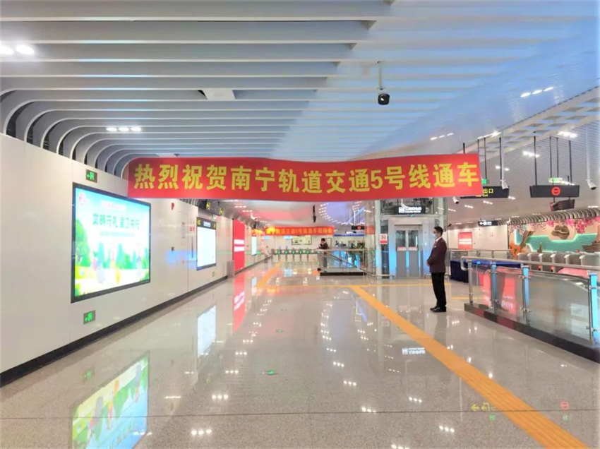 中國中鐵作為南寧地鐵5號(hào)線的施工總承包方之一,由中鐵交通南寧地鐵指揮部團(tuán)結(jié)中鐵一局、二局、三局、四局、六局、隧道局、廣州局、上海局等參建單位,充分引導(dǎo)黨員干部共同發(fā)揮先鋒模范作用,帶領(lǐng)全體中國中鐵人同向發(fā)力,高效承建了五一立交站、新秀公園站、廣西大學(xué)站、秀靈路站、明秀路站、北湖南路站6個(gè)車站以及五新區(qū)間、新廣區(qū)間、廣秀區(qū)間、秀明區(qū)間4個(gè)區(qū)間的土建、機(jī)電安裝、裝飾裝修工程,全線一半鋪軌、供電工程及全線弱電工程。