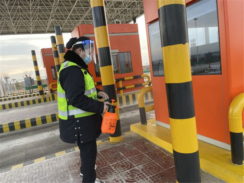 面對春運(yùn)期間車流大幅增加、疫情防控形勢嚴(yán)峻等情況,綏延項(xiàng)目繃緊“安全保通”和“疫情防控”兩根弦,及時(shí)對公共區(qū)域、CPC卡通行介質(zhì)及現(xiàn)金進(jìn)行消毒,加強(qiáng)所屬站所進(jìn)出管控,全力以赴打響春運(yùn)保暢戰(zhàn)。
