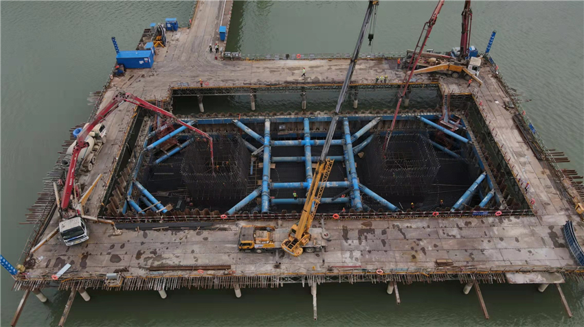 3月21日,經(jīng)過(guò)連續(xù)30個(gè)小時(shí)的澆筑,項(xiàng)目重點(diǎn)控制性工程西津郁江特大橋首個(gè)最大體積水中承臺(tái)澆筑完成,標(biāo)志著西津郁江特大橋即將轉(zhuǎn)入技術(shù)施工含量更高的主塔施工階段。