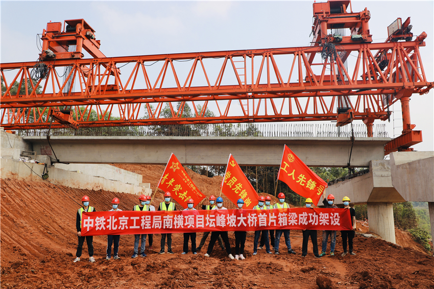 ▲壇峰坡大橋首片箱梁成功架設(shè)