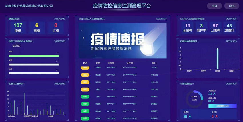 爐慈桑龍項(xiàng)目嚴(yán)格落實(shí)各項(xiàng)疫情防控舉措,積極引入疫情防控信息監(jiān)測(cè)管理平臺(tái),對(duì)參建單位管理人員、勞務(wù)作業(yè)人員、常駐工地門衛(wèi)、工地小賣店等3000多人全面覆蓋,實(shí)現(xiàn)縱向貫通、橫向覆蓋,用“數(shù)智防疫”賦能項(xiàng)目生產(chǎn)經(jīng)營(yíng),為項(xiàng)目投資建設(shè)管理和職工生命健康安全筑牢了“科技長(zhǎng)城”。