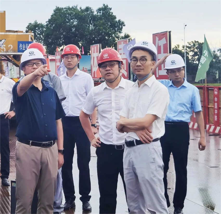 7月7日,長沙縣人大常委會副主任曹偉興一行到中南公司所轄松雅湖生態(tài)新城在建項目——長沙縣金安大道項目撈刀河大橋開展現(xiàn)場調(diào)研。
