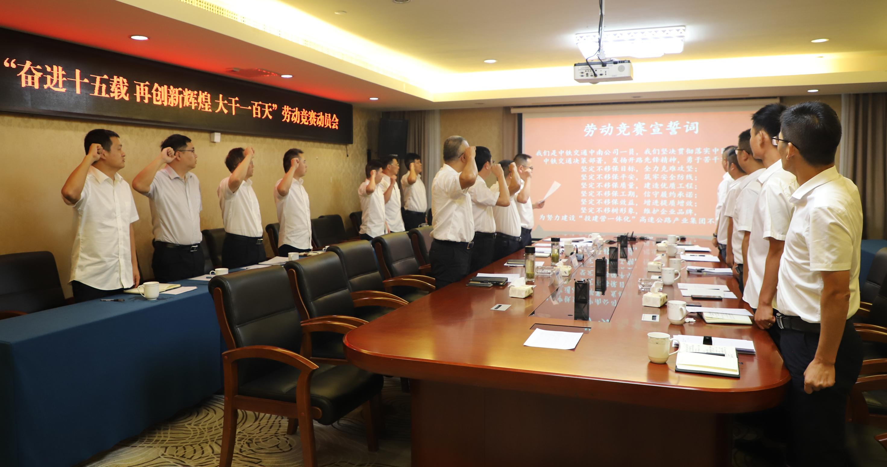 9月20日,中鐵交通在所屬南橫項(xiàng)目二標(biāo)現(xiàn)場(chǎng)召開(kāi)“奮進(jìn)十五載 再創(chuàng)新輝煌”大干一百天勞動(dòng)競(jìng)賽動(dòng)員大會(huì),南寧地區(qū)以外所屬單位在各地分會(huì)場(chǎng)同步召開(kāi)了動(dòng)員大會(huì),迅速在思想上、行動(dòng)上、作風(fēng)上全面進(jìn)入勞動(dòng)競(jìng)賽狀態(tài),全面掀起生產(chǎn)大干熱潮,用實(shí)際行動(dòng)把勞動(dòng)競(jìng)賽推向深入。